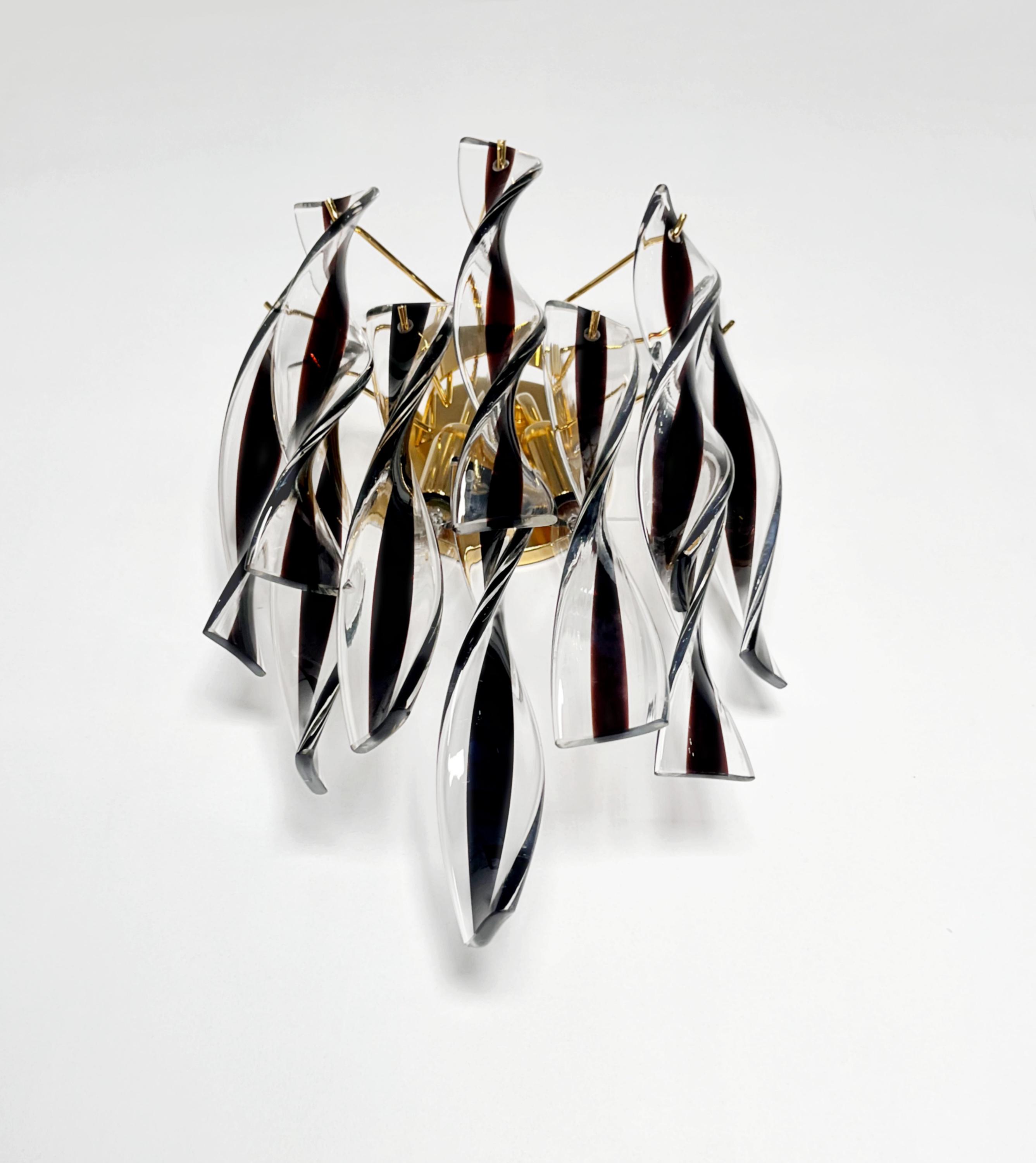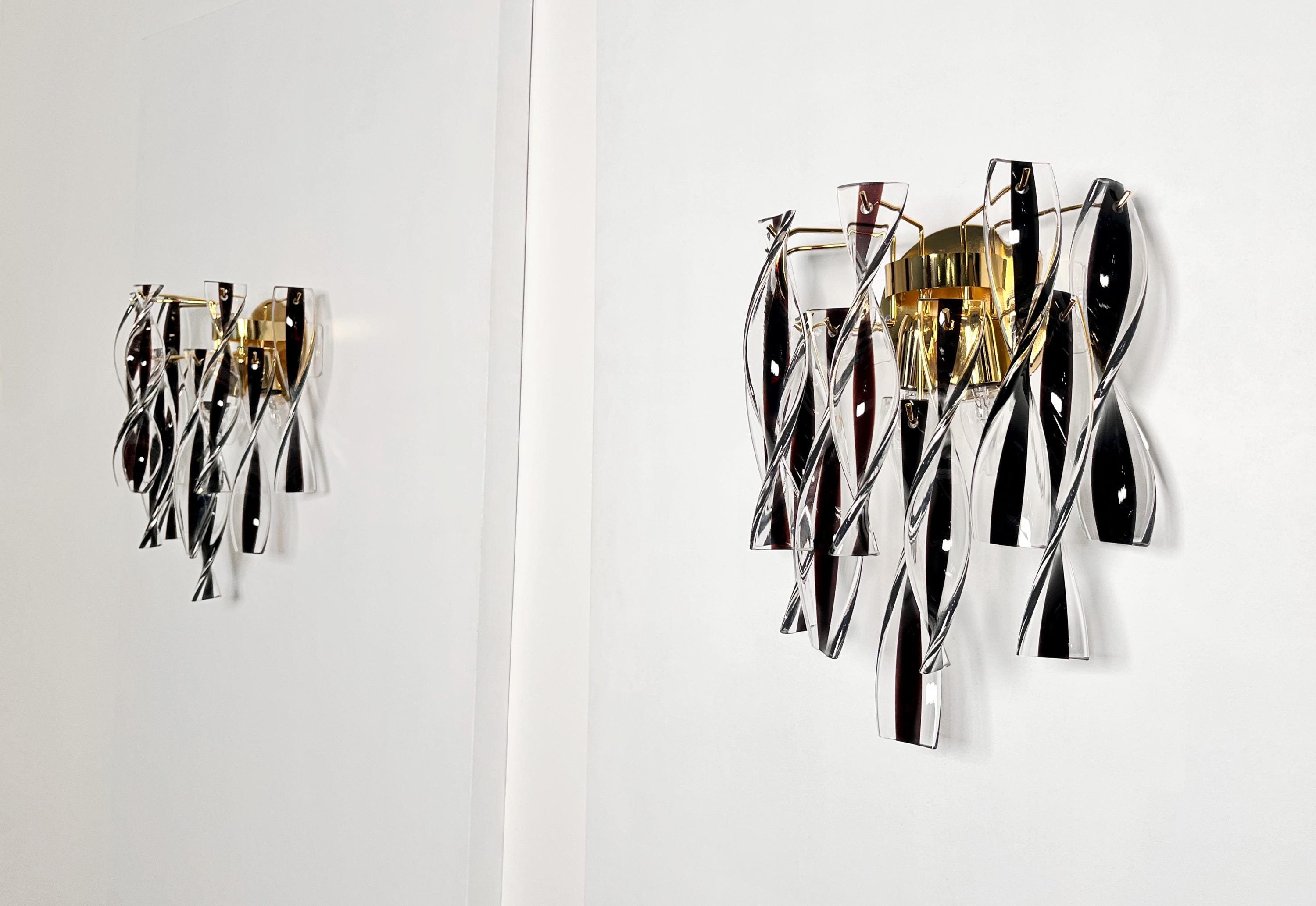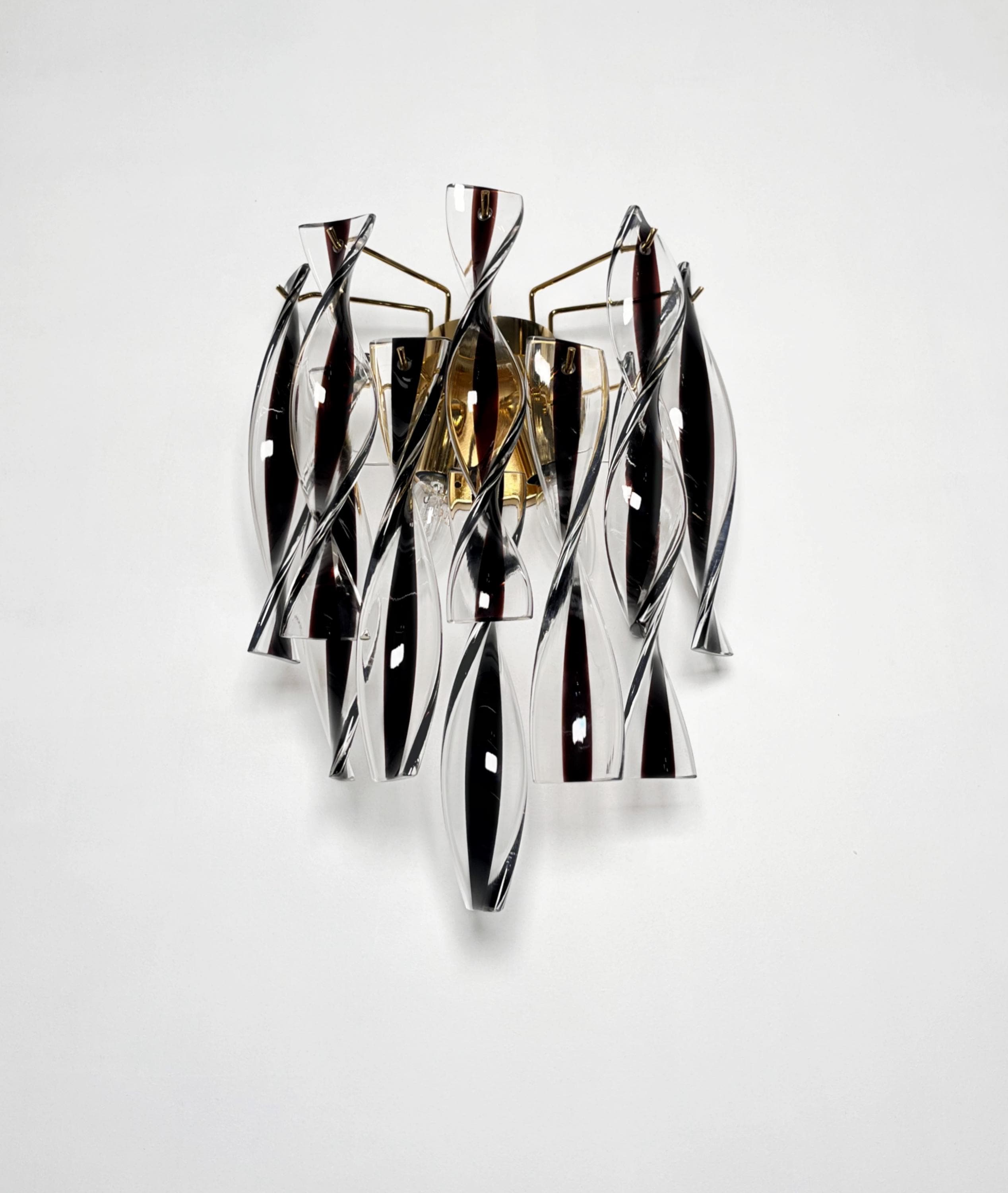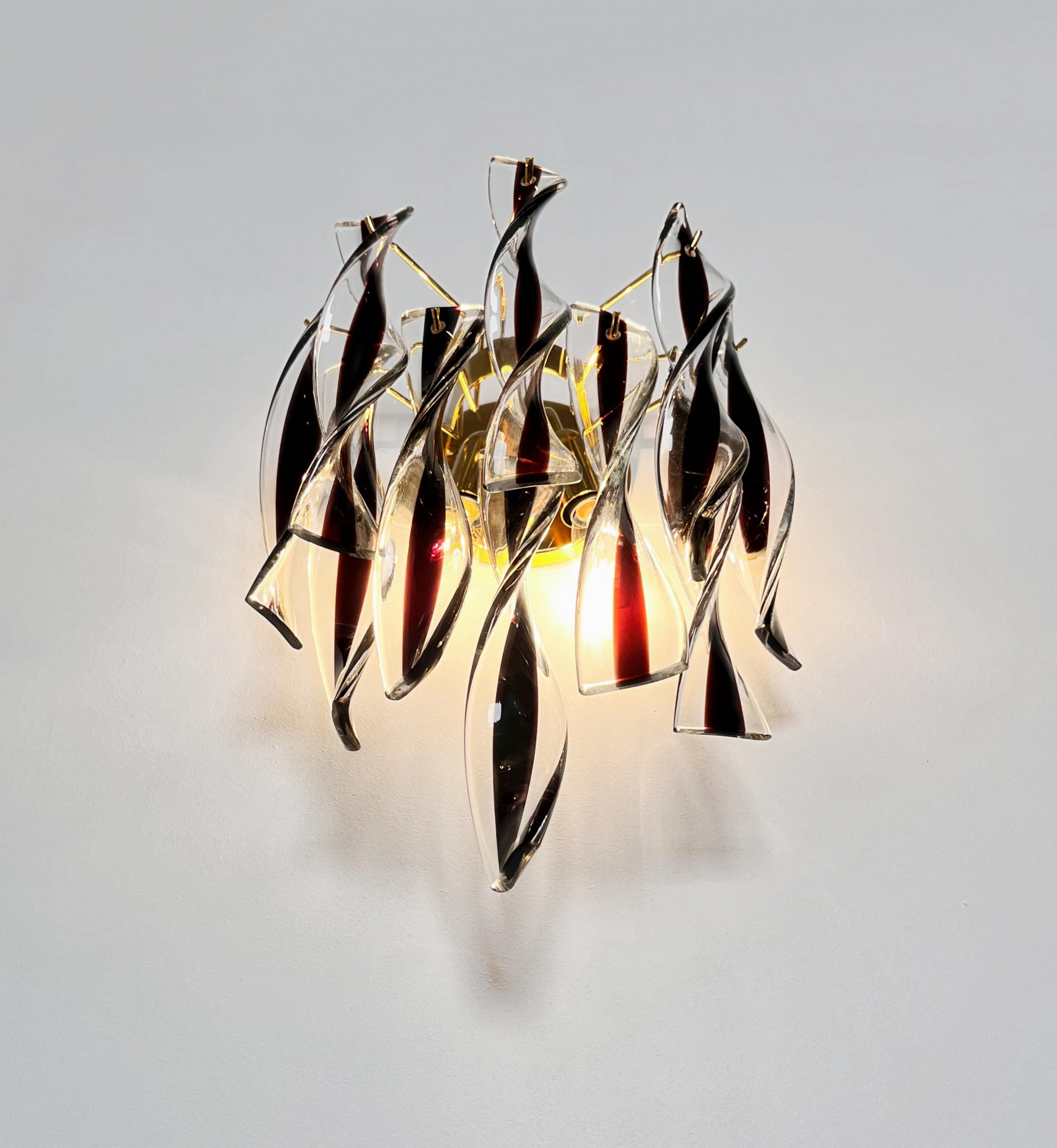 Pair of appliques with 10 pendants in colored Murano glass covered with crystal and hand-twisted in amethyst color. Gold-plated structure.