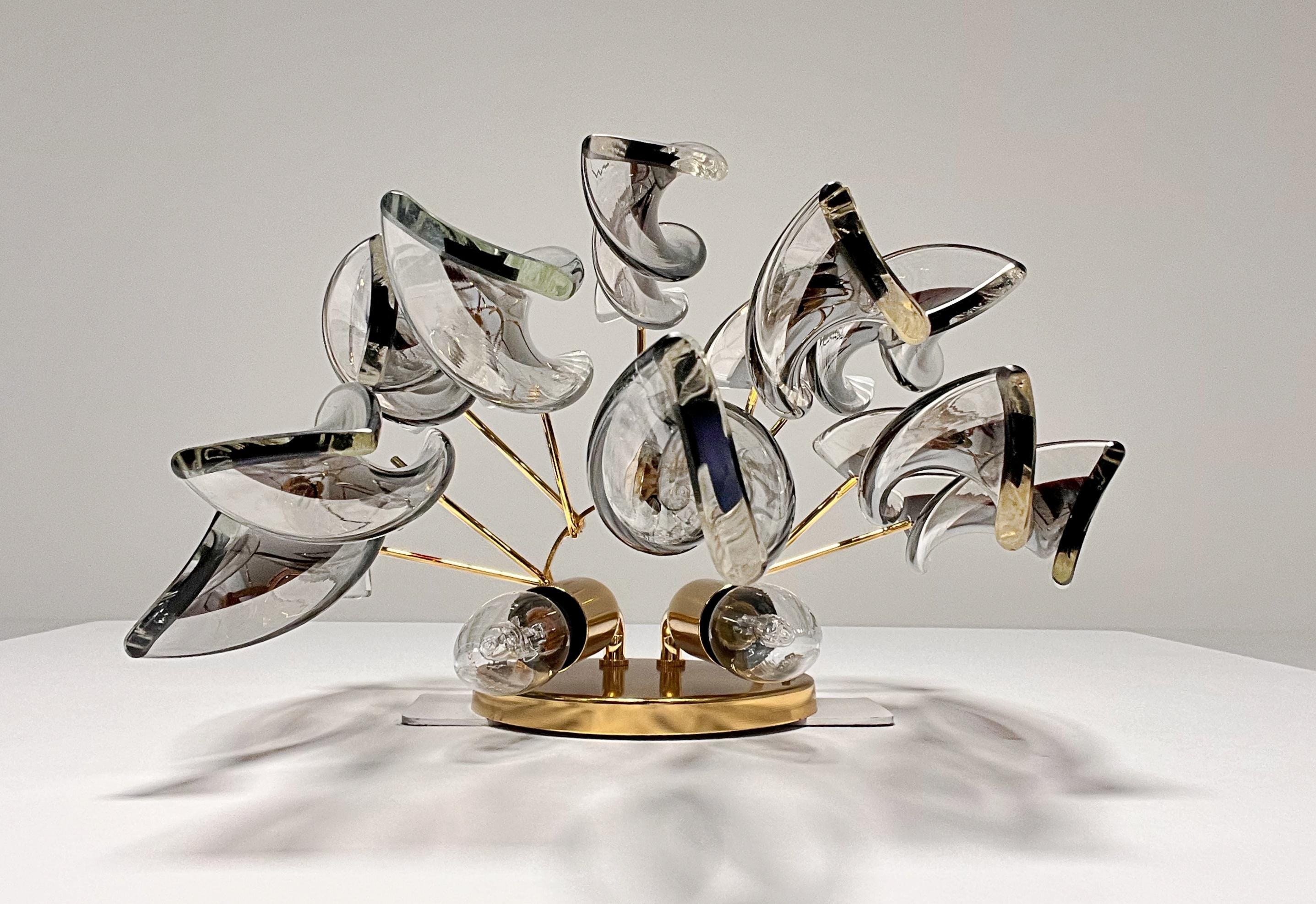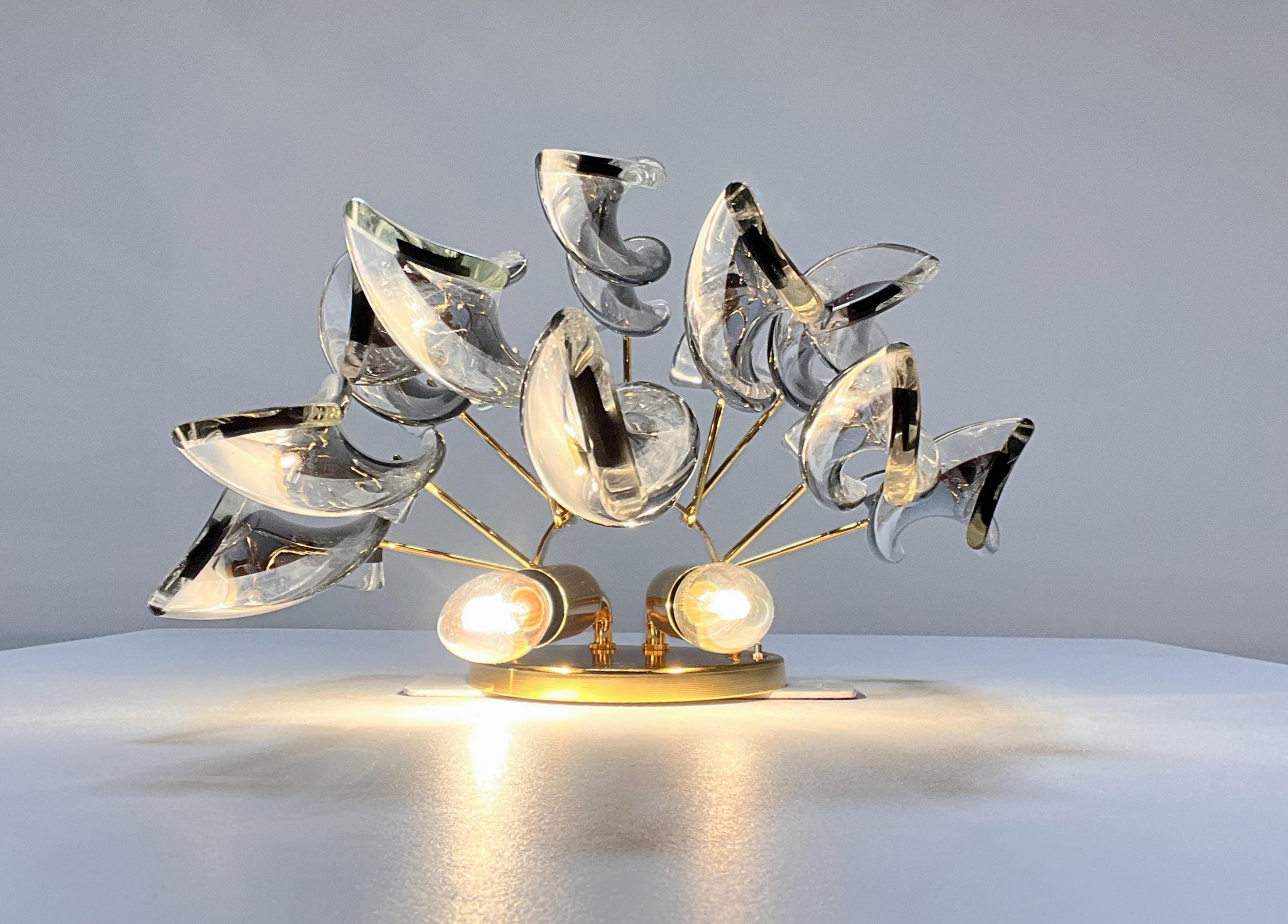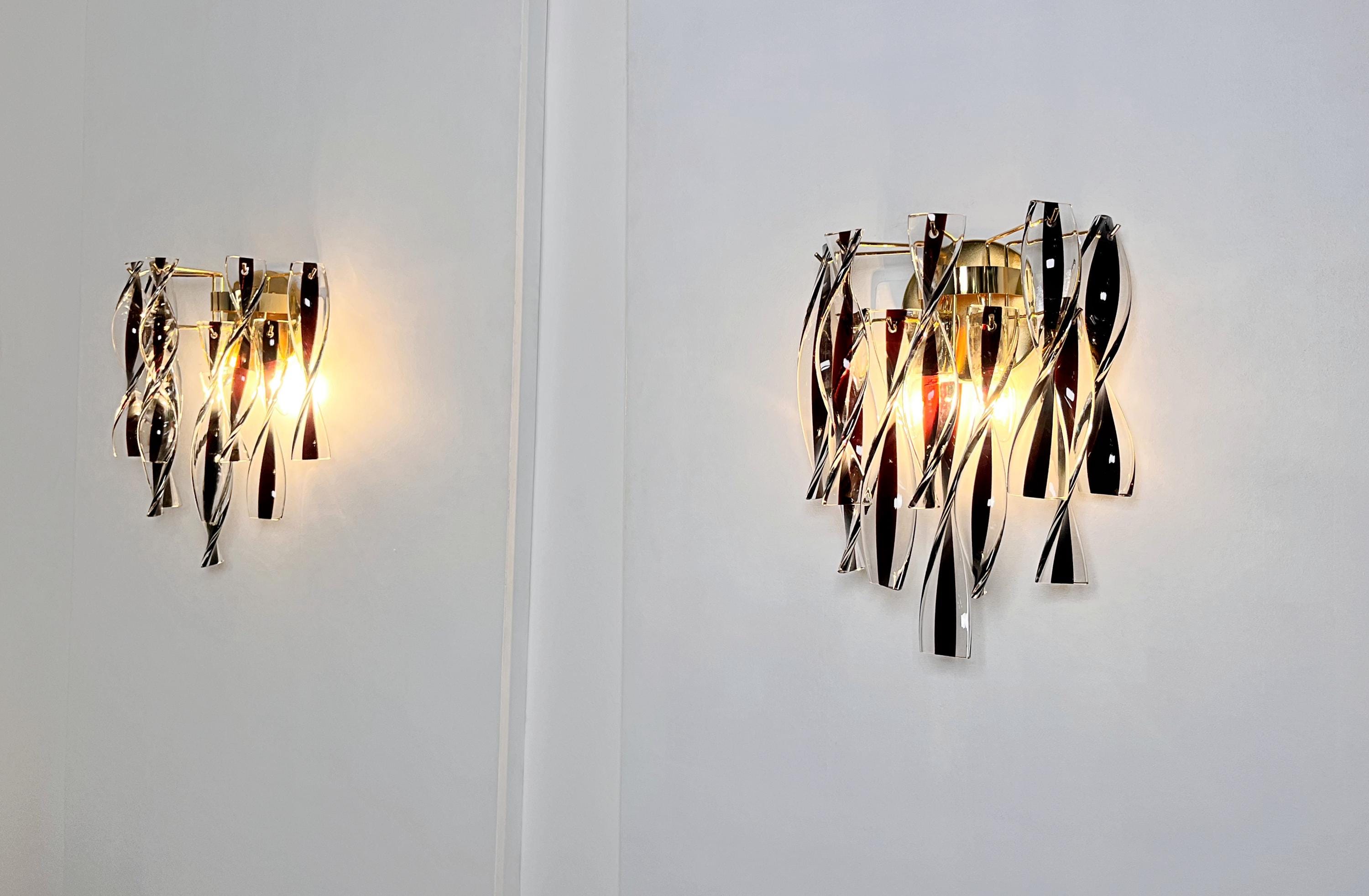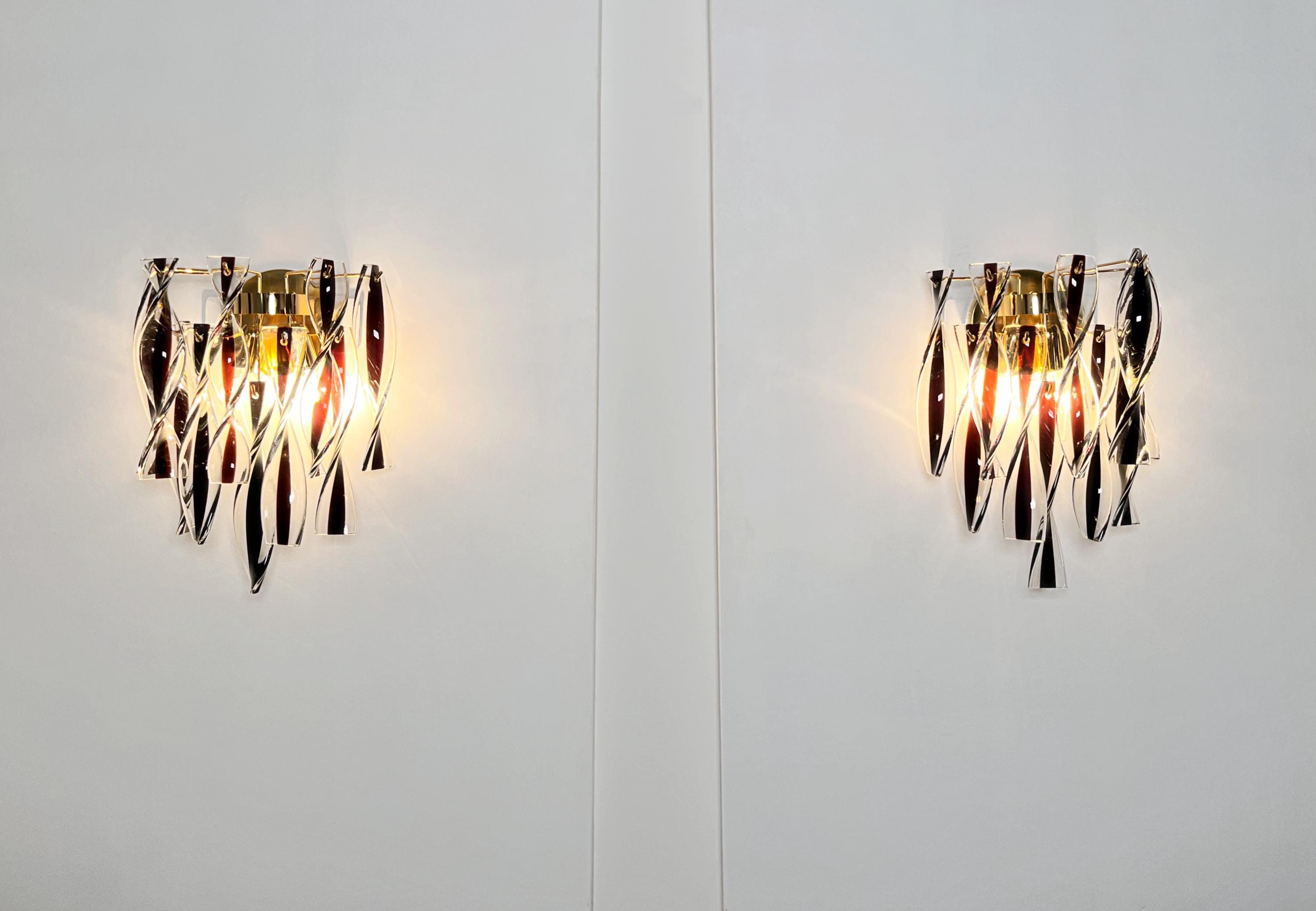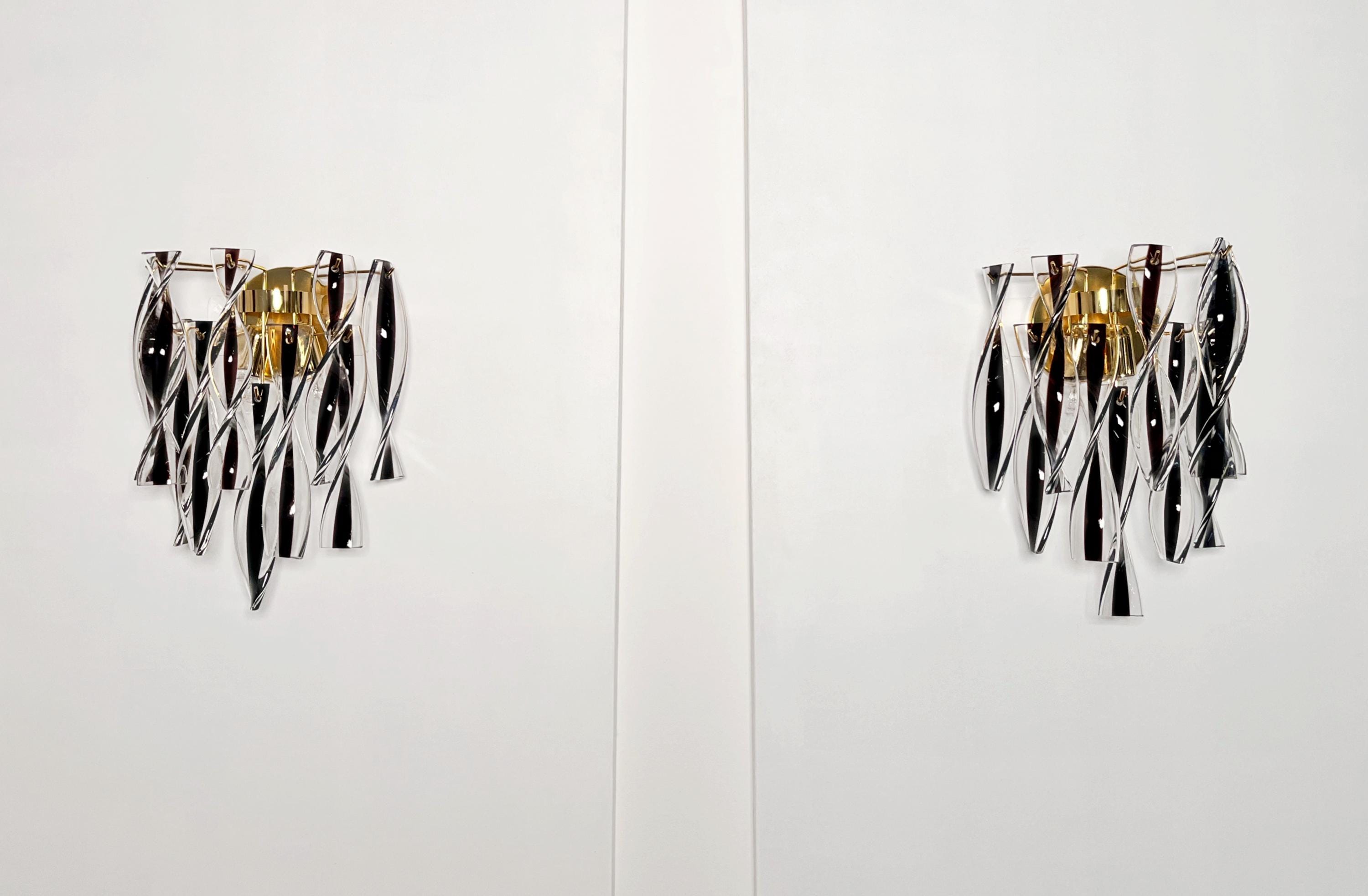 Pair of appliques with 10 pendants in colored Murano glass covered with crystal and hand-twisted in amethyst color. Gold-plated structure.