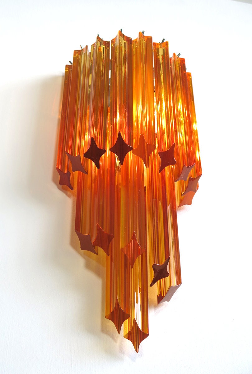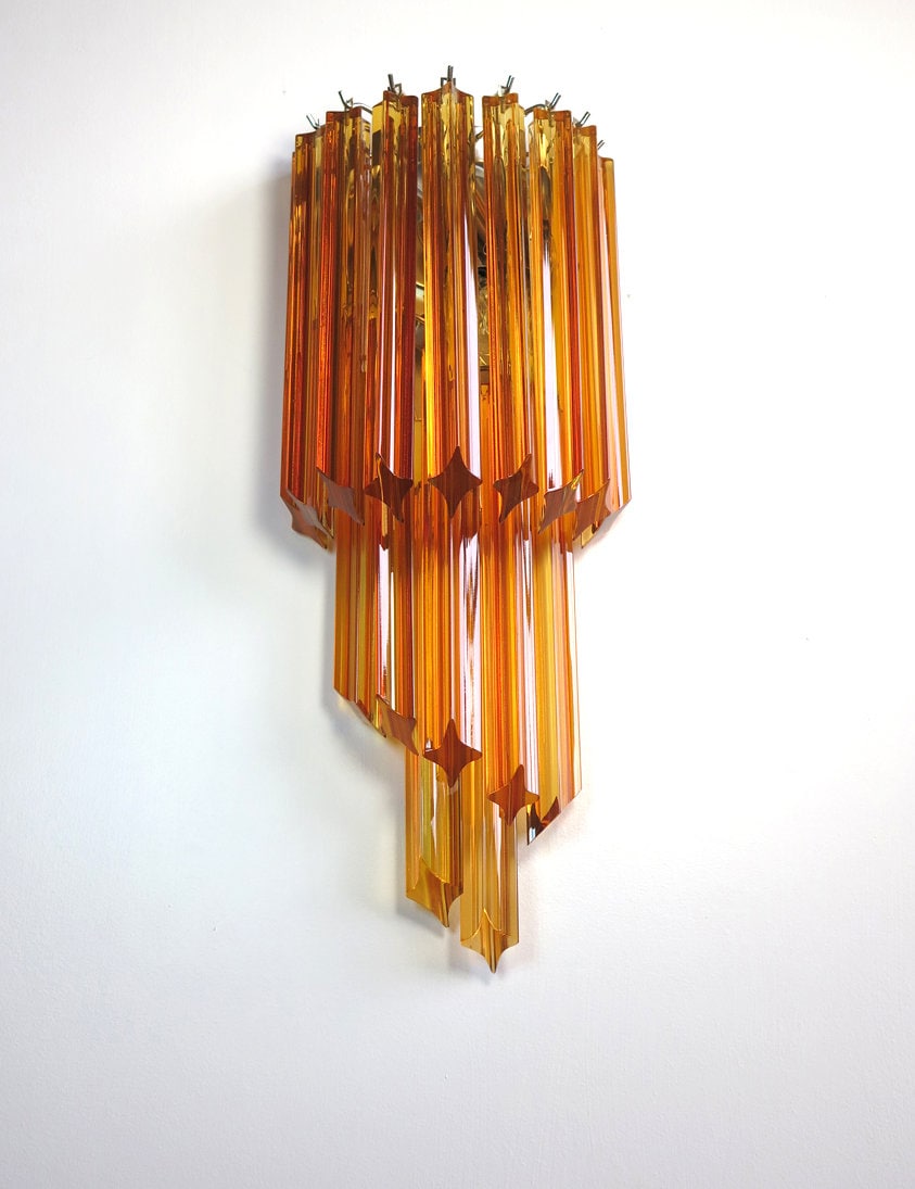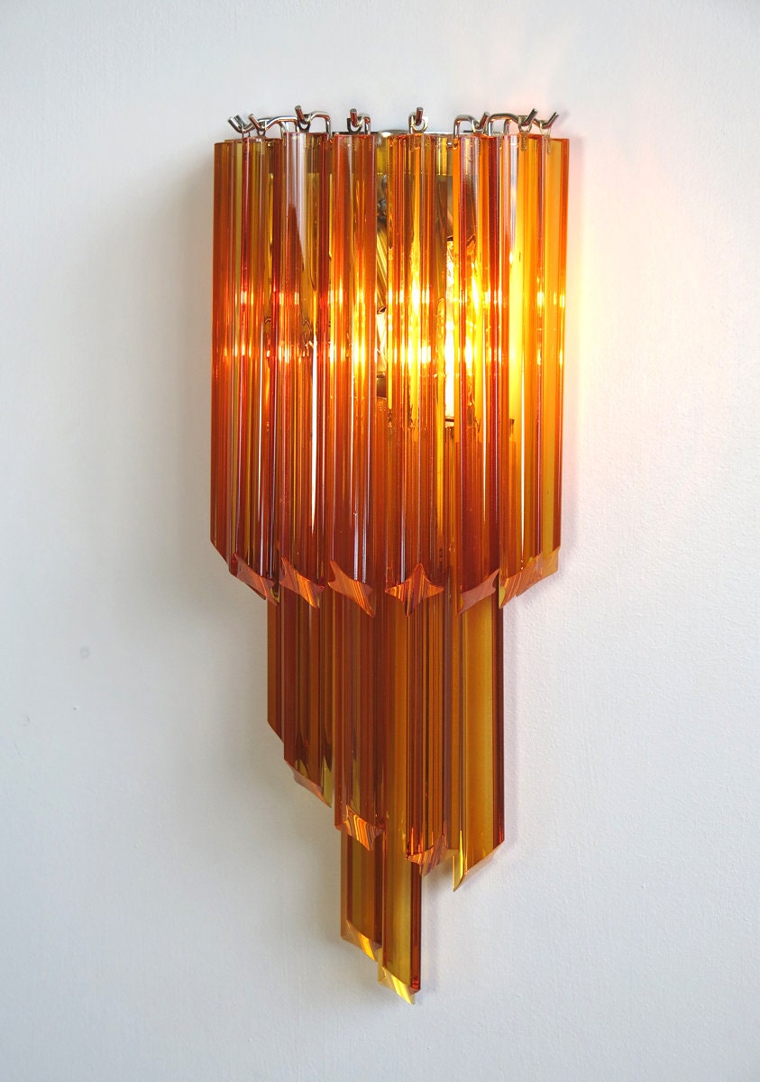 Fantastic pair of vintage Murano wall sconce made by 16 Murano crystal prism (quadriedri) for each applique in a chrome metal frame. The shape of this sconce is spiral.