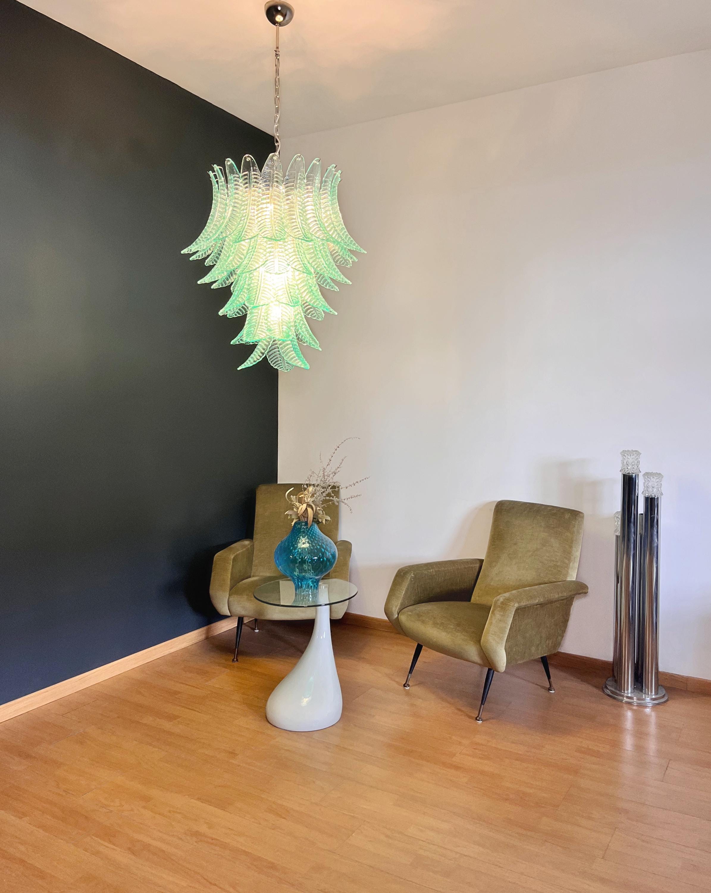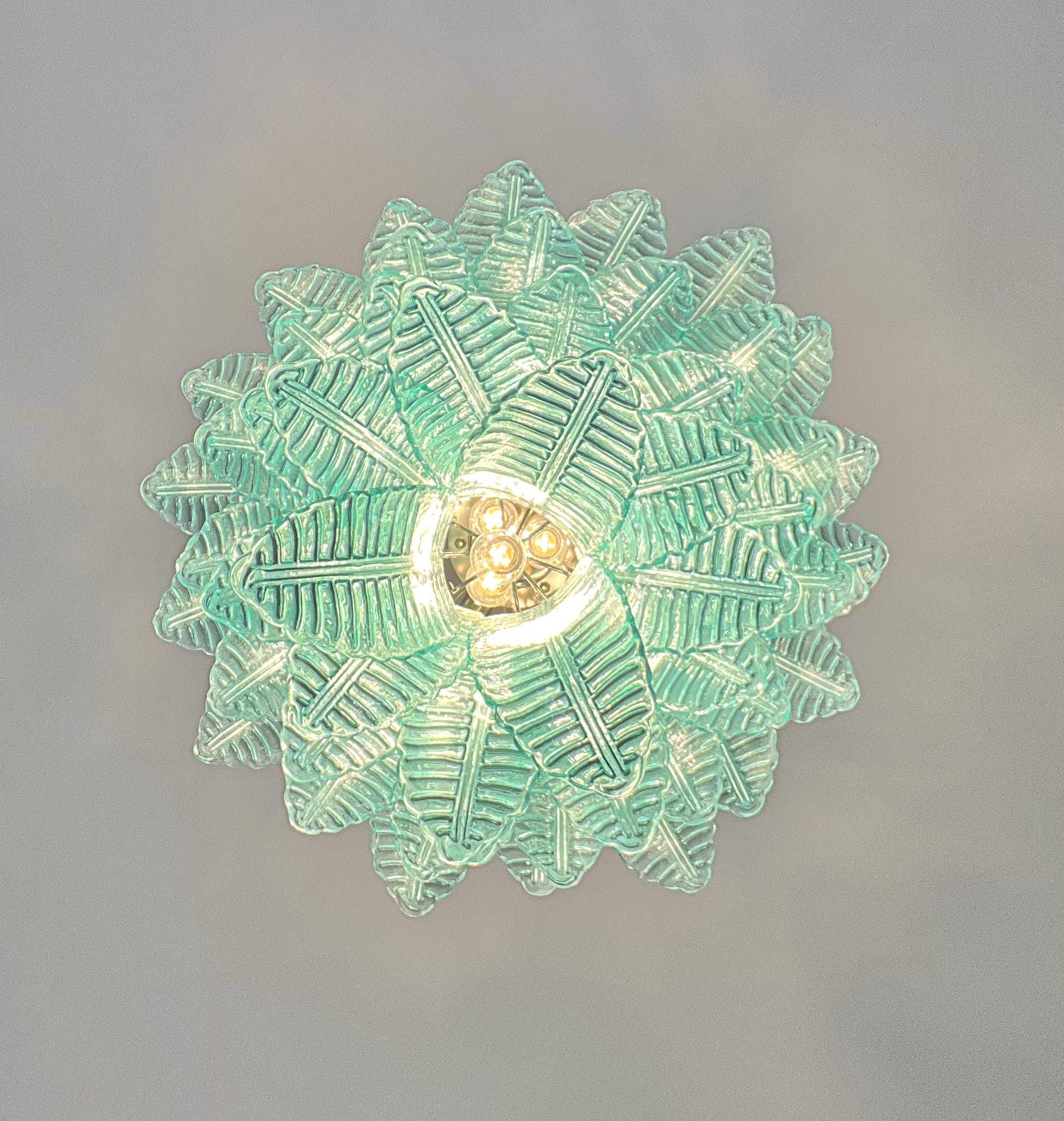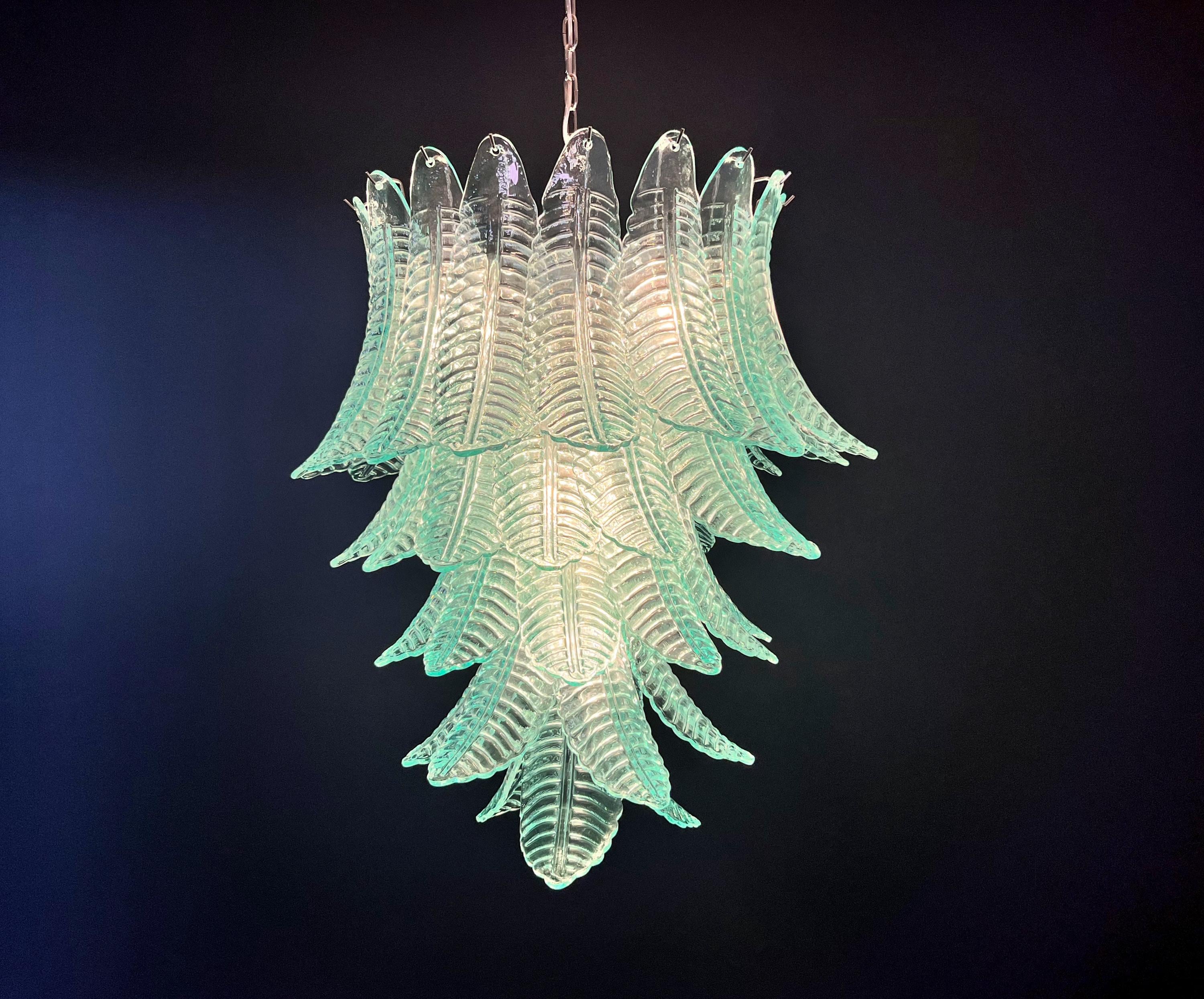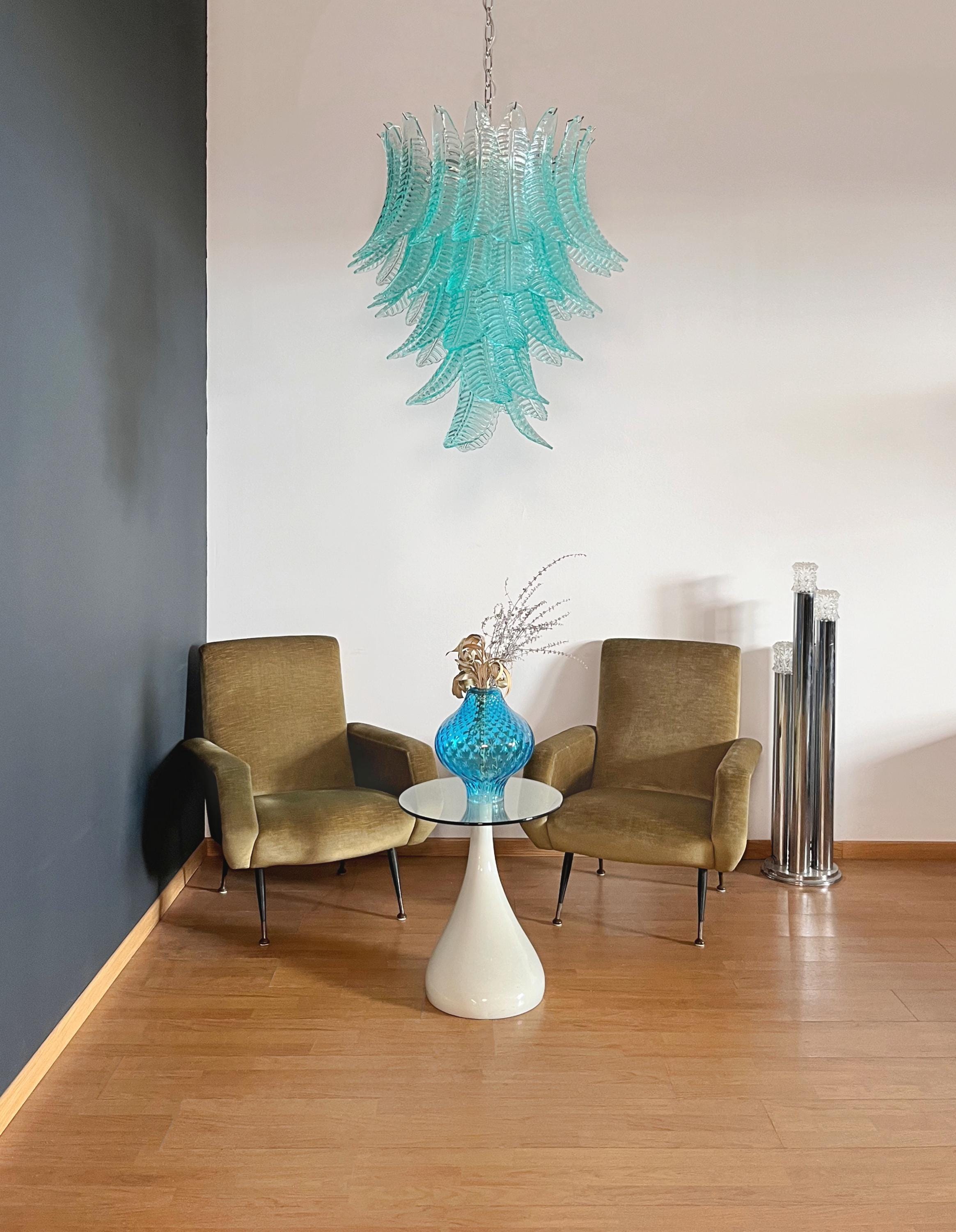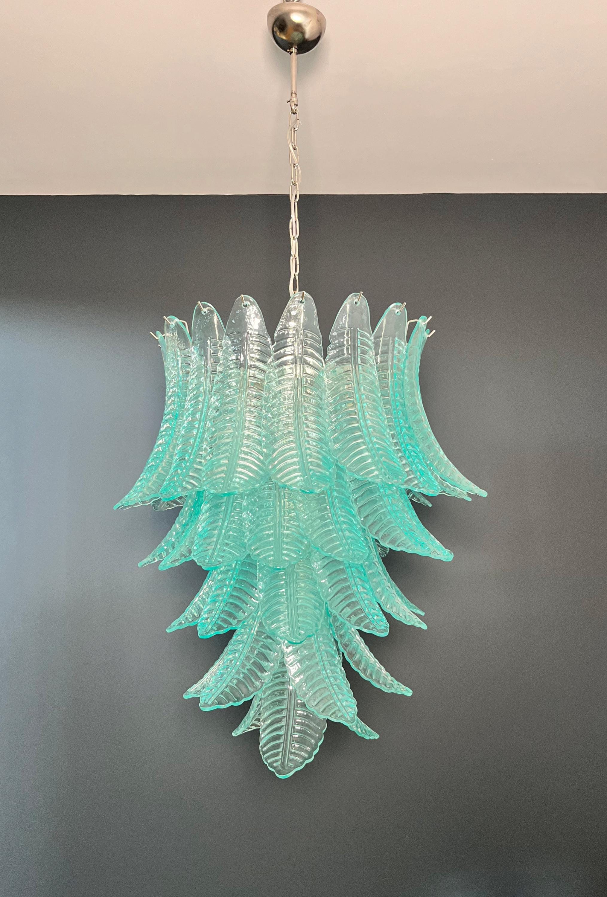 Beautiful and huge Italian Murano Chandelier composed of 52 splendid turquoise glasses that give a very elegant look. The glasses of this chandelier are real works of art, the weight of this chandelier is 40 kg.