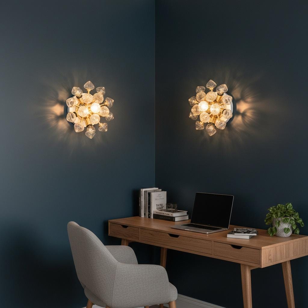A pair of lighting fixtures, which can be either a wall lamp or a ceiling light, given their configuration; they feature a Sputnik/Mid-Century Modern design, characterized by a futuristic, ray-like aesthetic.