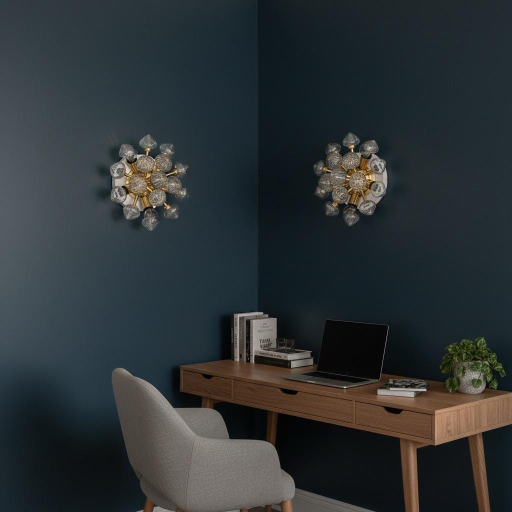 Light bulbs: 5 light bulbs for each wall lamp, E14 dimension (not included in the sale) - On request we can replace the lampholders with those suitable for the American electrical system.