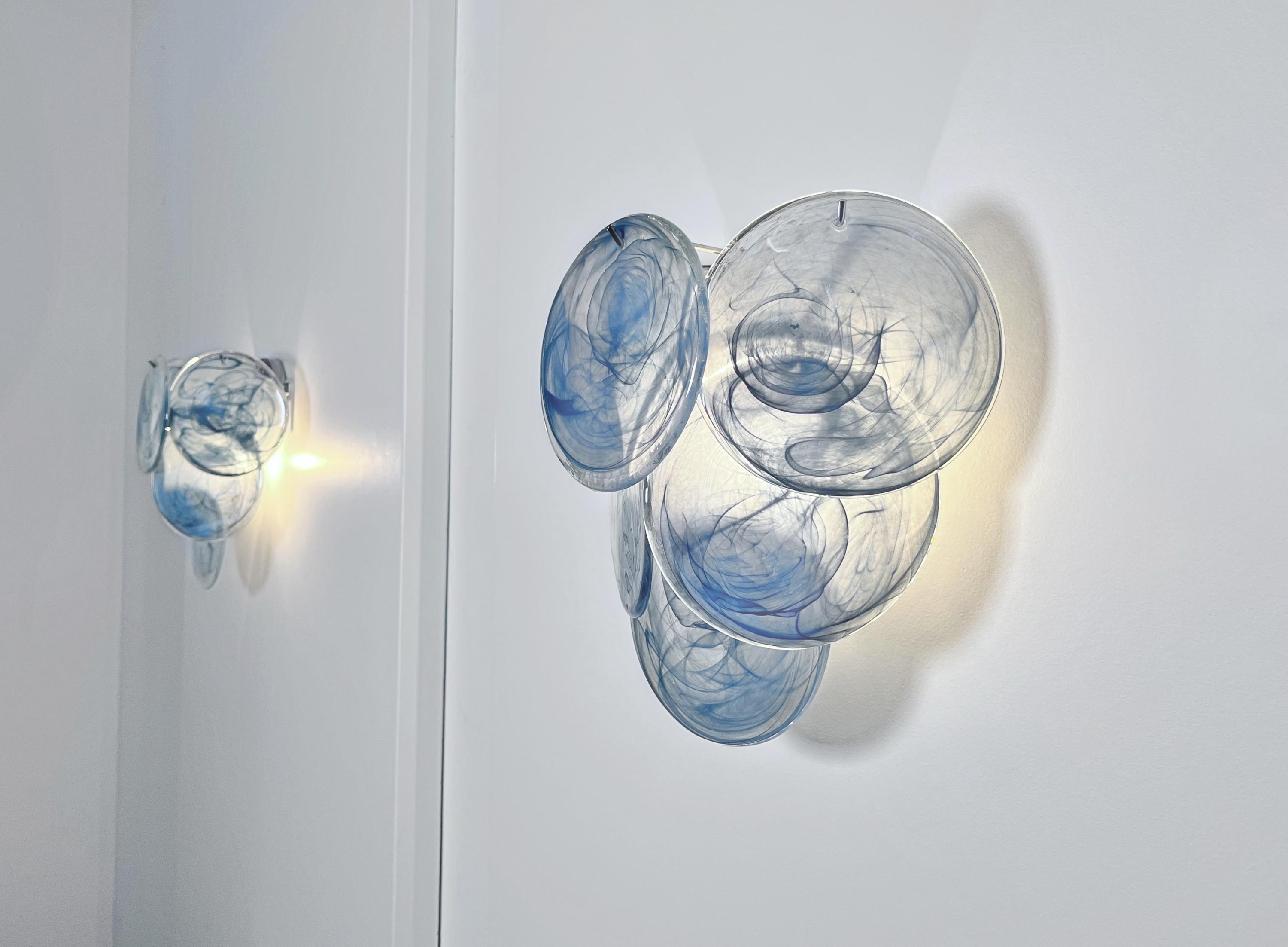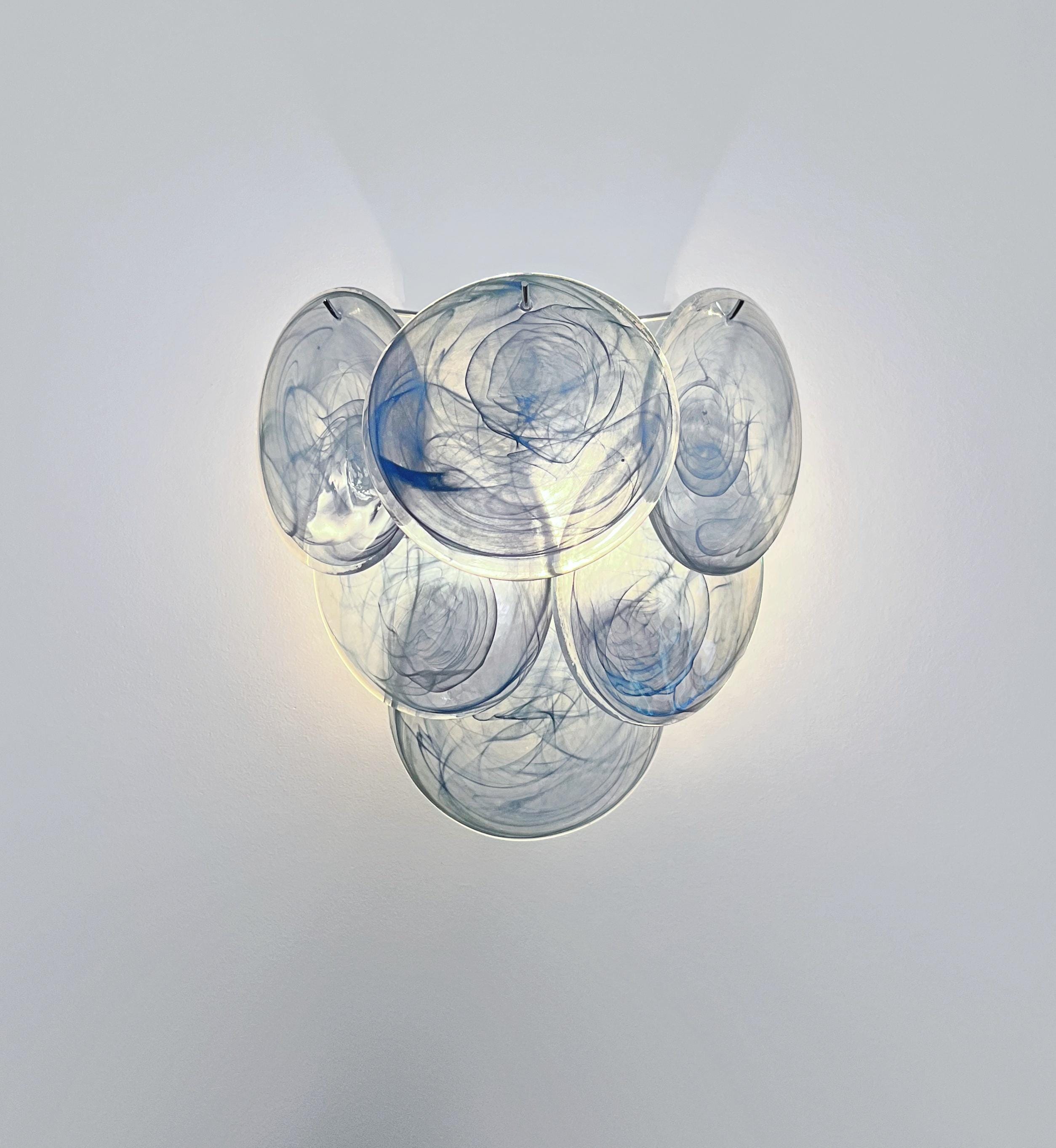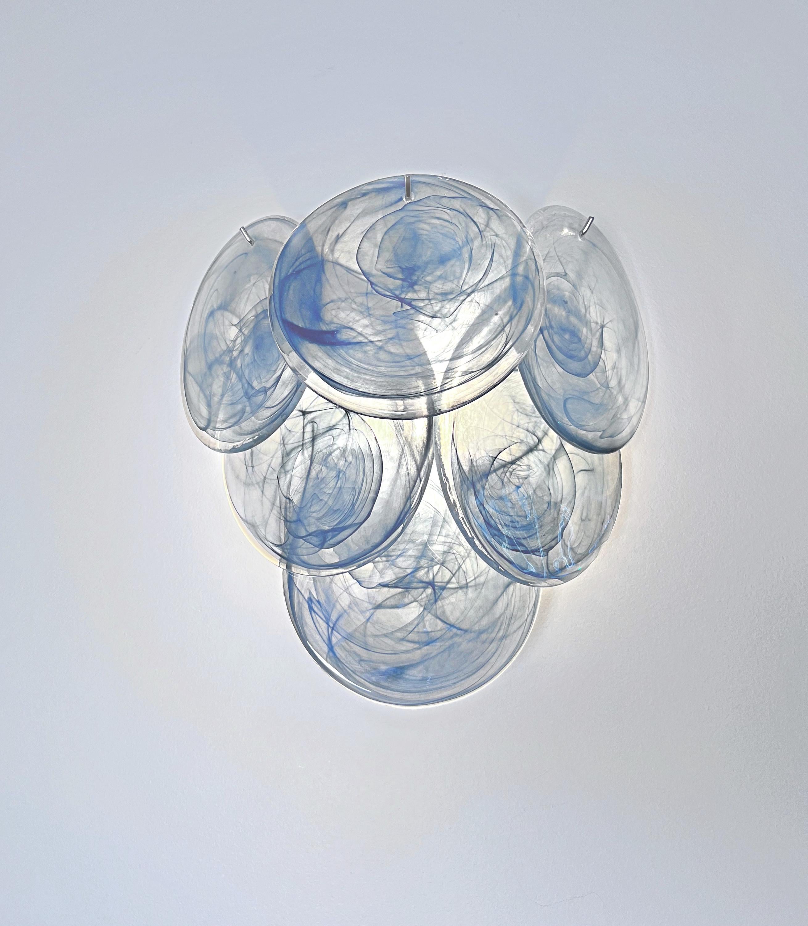 Pair of Vintage Italian Murano appliques in Vistosi style. Wall lights have 6 glass for each, cobalt blue alabaster glasses. Nickel metal frame.