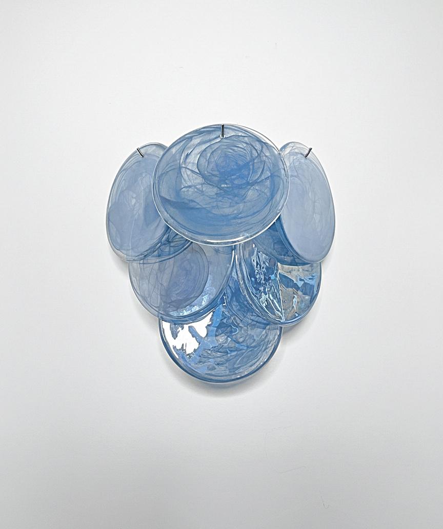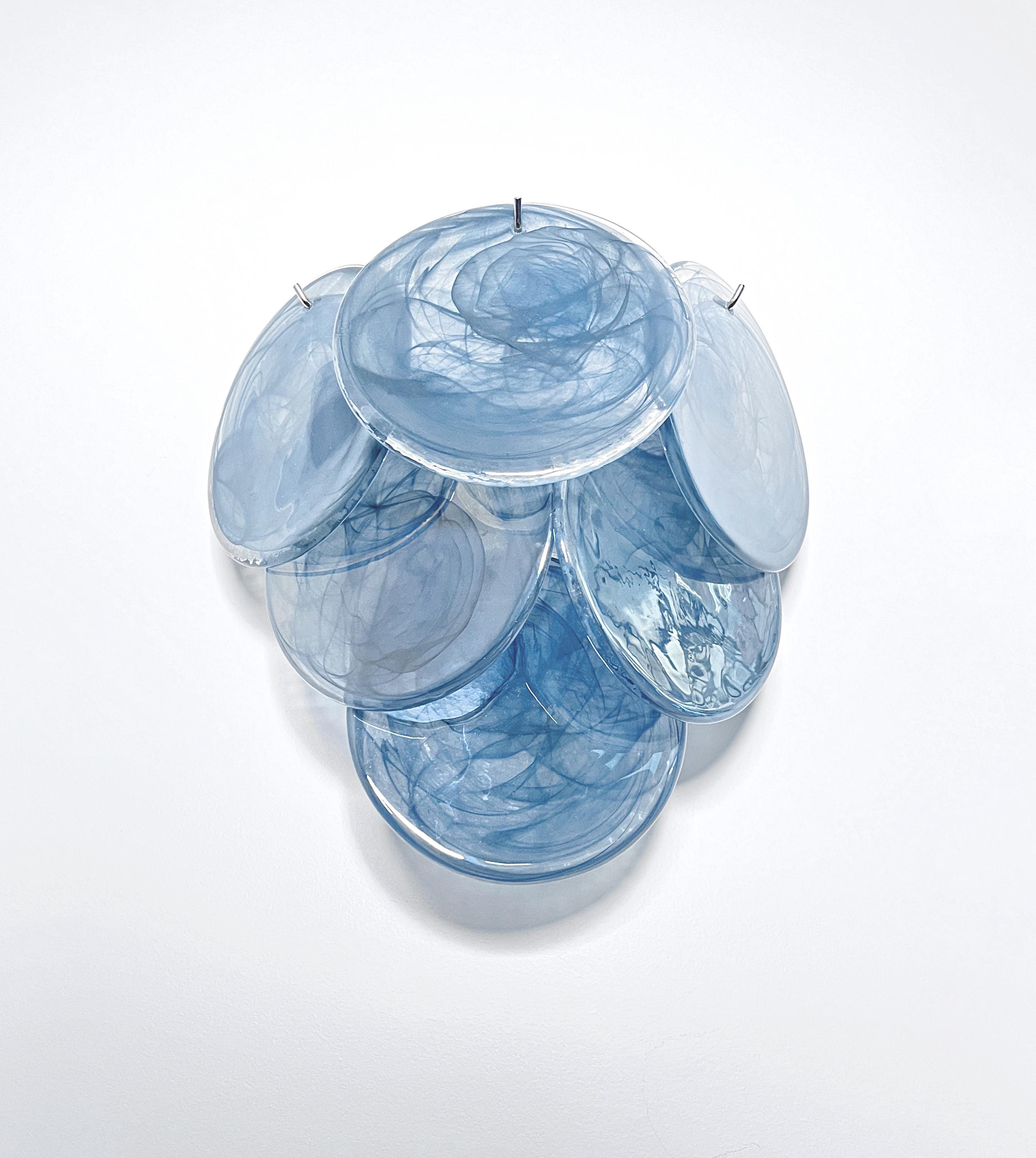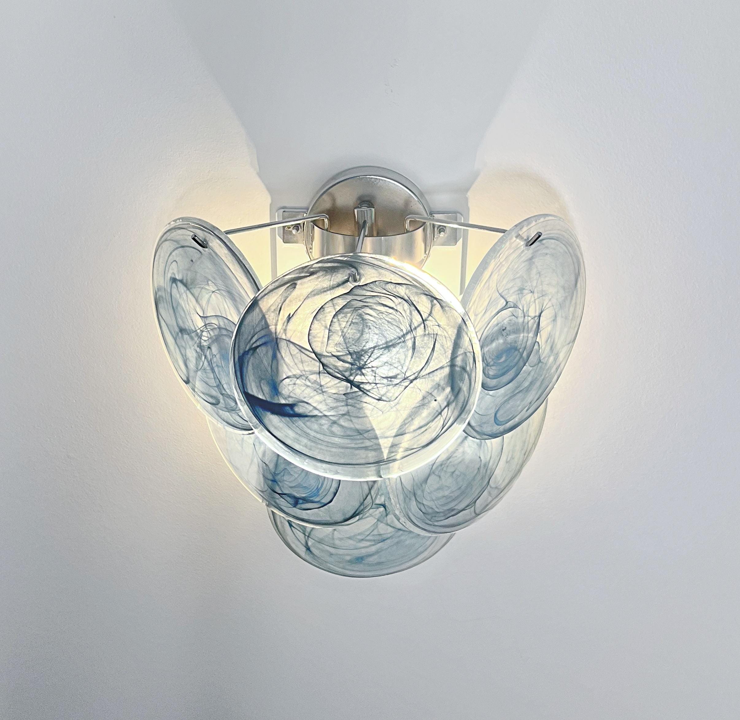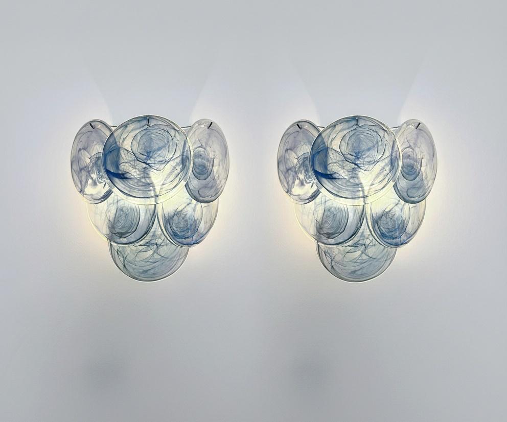 Pair of Vintage Italian Murano appliques in Vistosi style. Wall lights have 6 glass for each, cobalt blue alabaster glasses. Nickel metal frame.